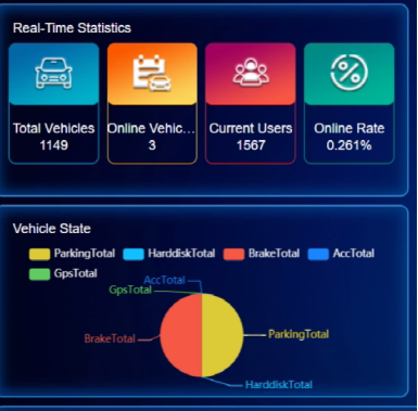 1. It will display the status of vehicle and summaries of fleet including online vehicle number, total vehicle number, hardware error etc.